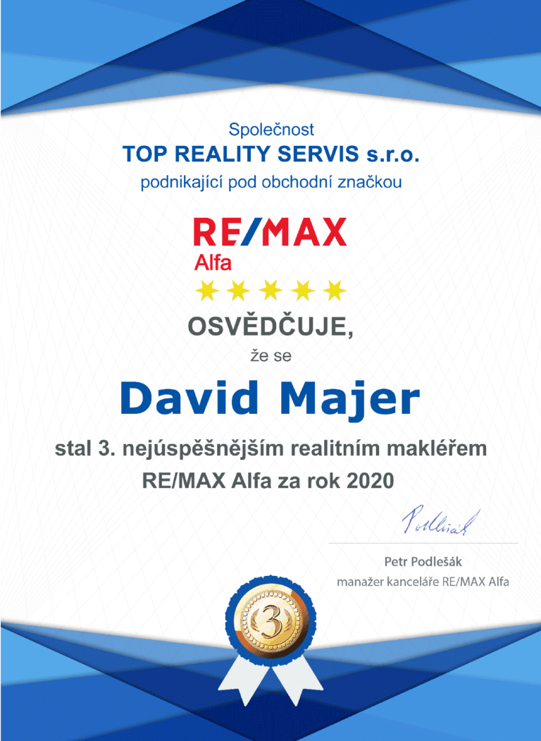 3. nejúspěšnější makléř RE/MAX Alfa roku 2020
