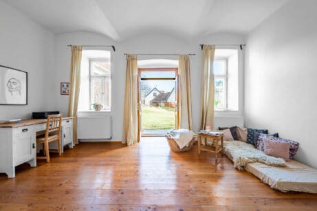 Byt s dispozicí 3+kk o ploše 84,3 m2 ve 2. NP dvou podlažního cihlového domu v oblasti Vinařice, okres Kladno.
