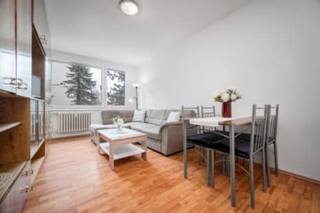 Byt 3+kk o ploše 55,25 m2 + balkon ve 4. patře panelového domu s výtahem v širším centru v klidné části Praha 8 – Kobylisy s veškerou občanskou vybaveností a výbornou dostupností do centra města.
